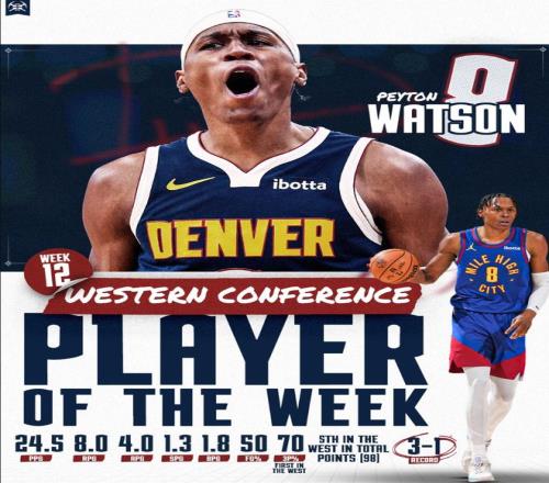 而且上周的西部周最佳球员竟然是沃特森,他生涯首次拿到周最佳,他帮助掘金3胜1负,场均24.5分8篮板4助攻1.3抢断1.8盖帽,命中率50%,不得不说已经攻防一体。