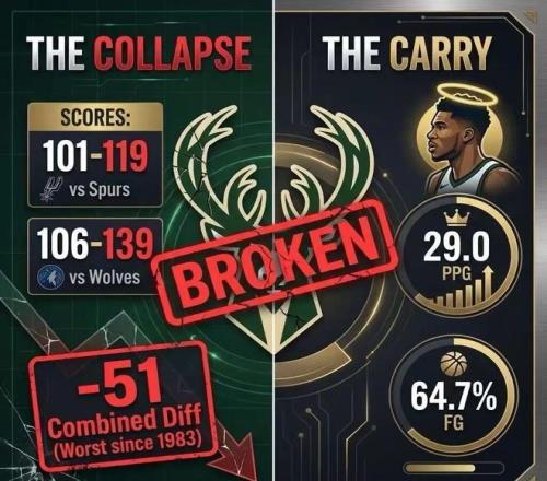雄鹿最近的比赛太糟糕,一如人们预想主场被狼狂胜33分,客场又被马刺血洗创队史双场净负51分的耻辱纪录,一度引发...