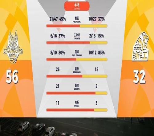 半场打完,山东在鲍威尔、陶汉林、克里斯合砍42分的带领下,取得56-32领先广厦,几乎可以说是完全碾压广厦!得分篮板助攻抢断,数据全面领先广厦,胡金秋正负值-25,孙铭徽-29,布朗毫无状态,广厦三巨头合计仅得7分。